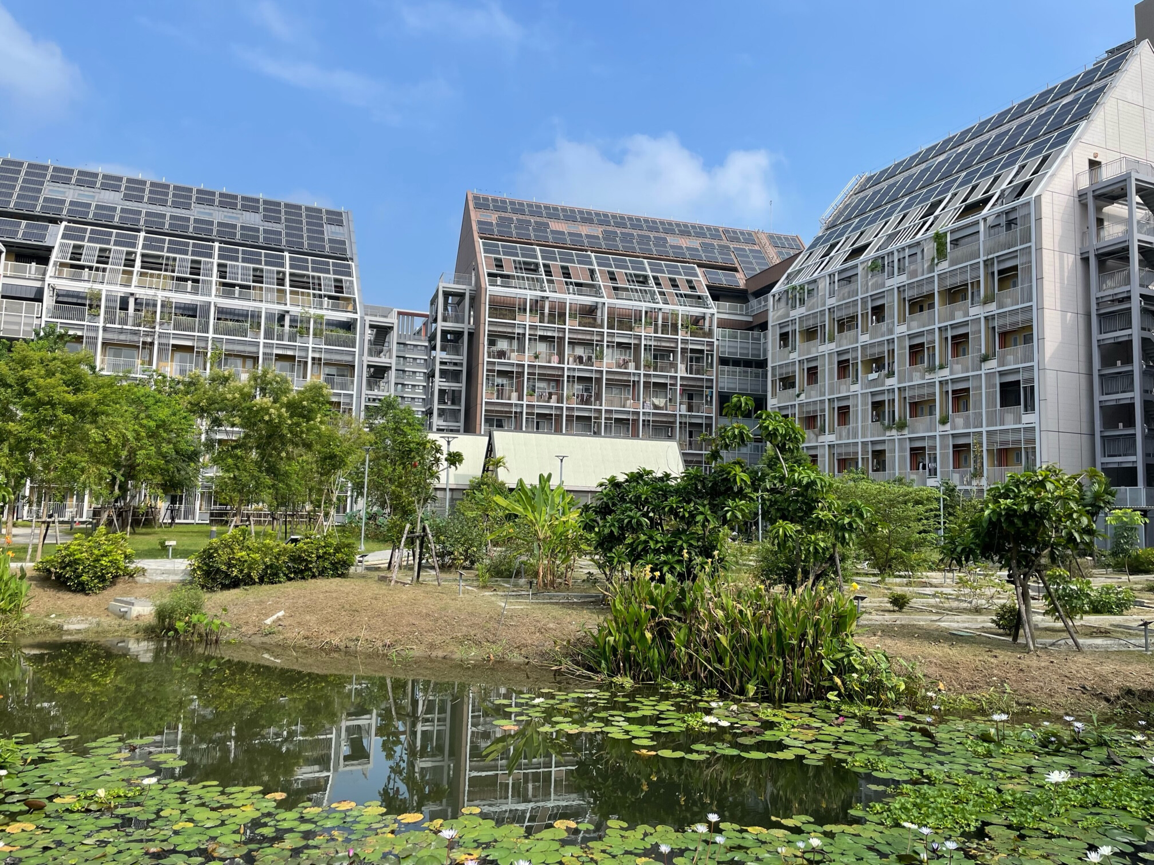 From small, community-based initiatives such as this, we moved on to larger, top-down projects. One of these was Taisugar Circular Village, a circular housing development outside the city of Tainan. Built by the Taiwan Sugar Company, which is the largest landowner in the country, the development is intended as a system demonstrator putting a whole suite of circular principles into practice. The buildings use prefabricated, modular elements designed for easy disassembly and reuse, and every element, from structural members to pipes, has a material passport logging the embodied carbon and other data required for reuse in, say, thirty years’ time. Designed by Taipei based practice Formosana, the buildings provide 351 apartments arranged attractively around a community garden. The roofs are lined with solar panels and the buildings are energy efficient. And the whole model is based on renting, not just the apartments, but all the appliances and the furniture as well. There are event communal kitchens.