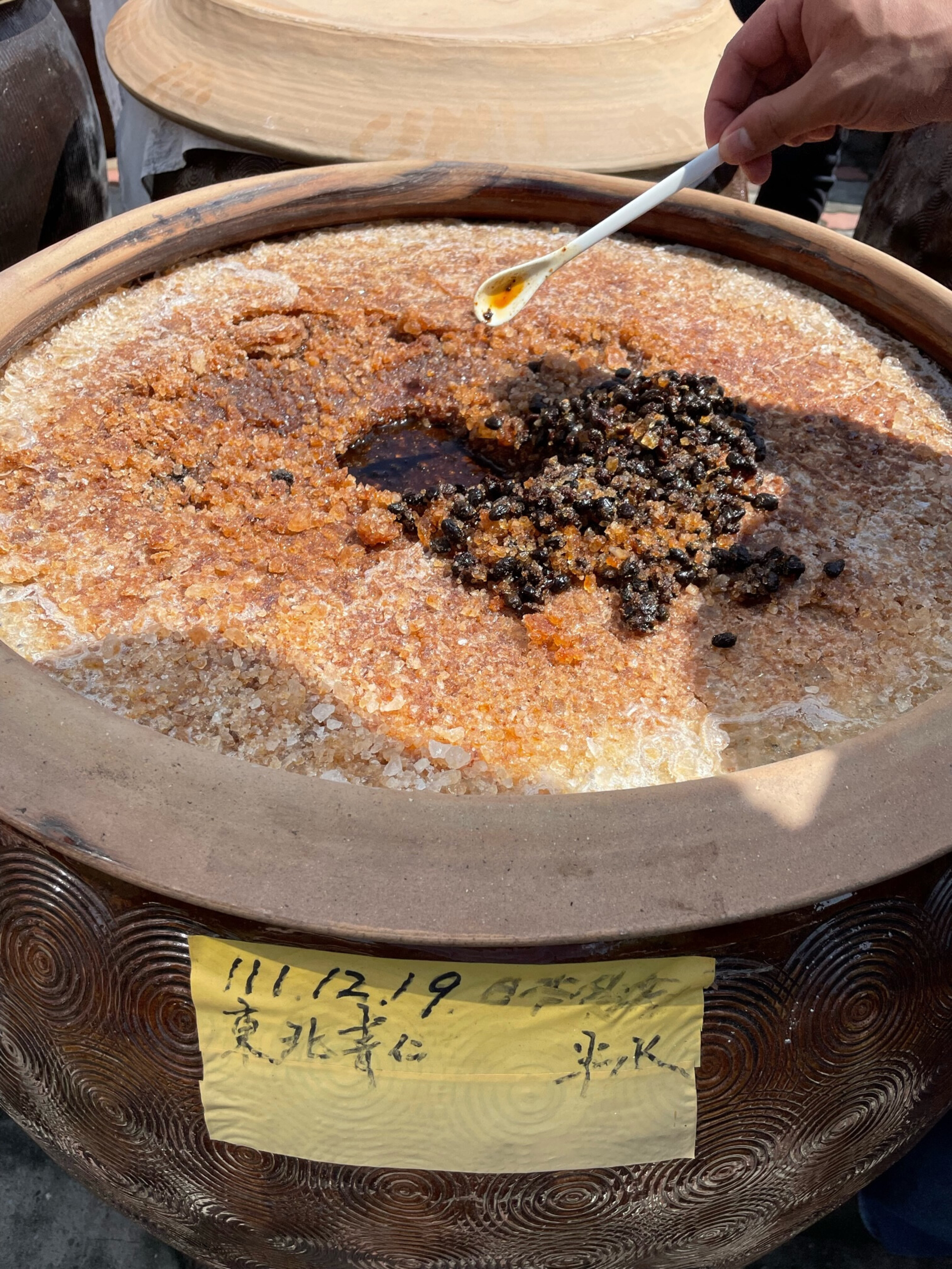 As with any fermented product, the key ingredient is time. On Yu-Ding-Shing’s roof terrace, rows of terracotta vessels each hold hundreds of kilos of bean water, slowly baking in the sun under a protective crust of salt. Unlike mass-produced soy sauce, Yu-Ding-Shing’s is bioregional, using local soy beans and sea salt, and the brothers strengthen their bond with local farmers by hosting community meals where new recipes get trialled.