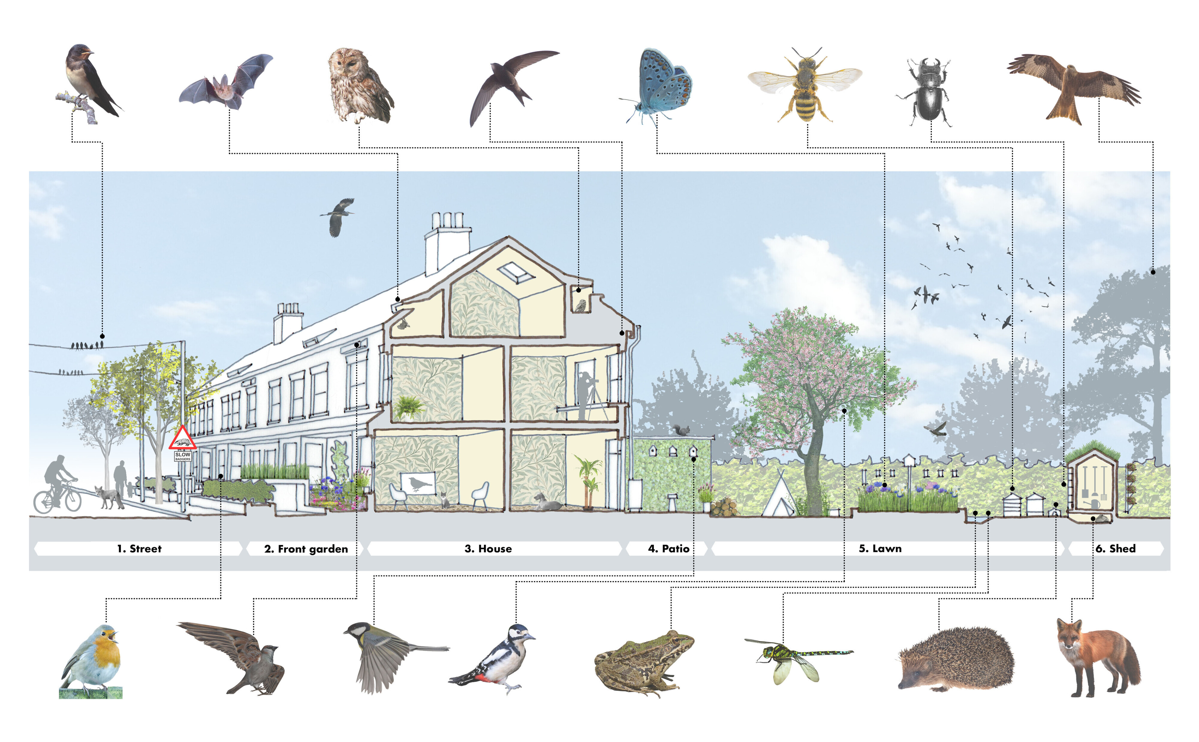 The Rewild My Street project is a design-led, practice-centred project which uses architectural drawings to inspire and empower residents to make small adaptations to their homes, gardens and streets. This benefits biodiversity, health and well-being and fosters resilience to climate change. Wild Ways then informs and strengthens these activities through behavioural science research.