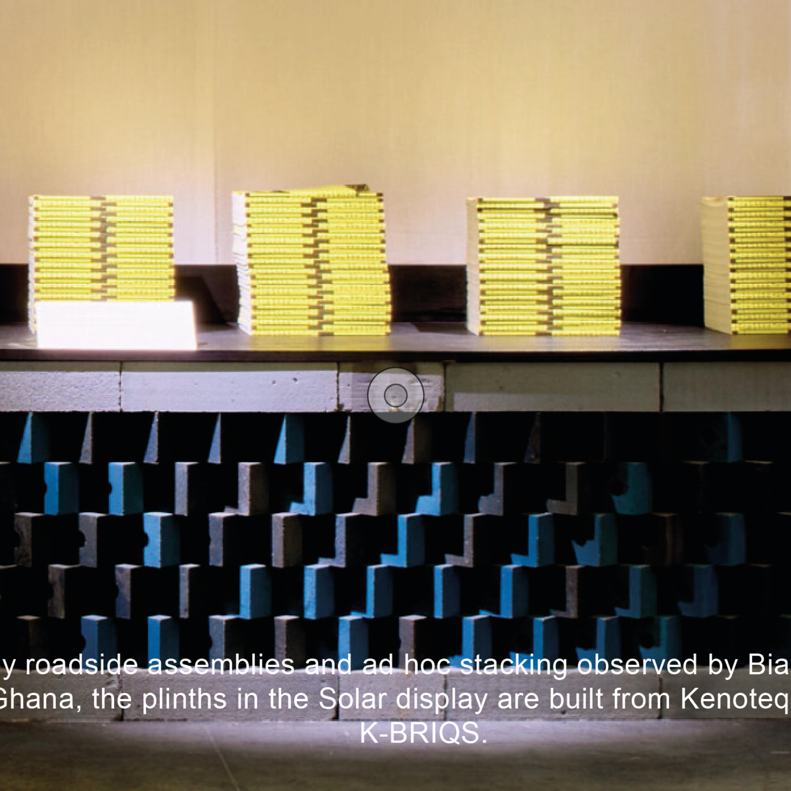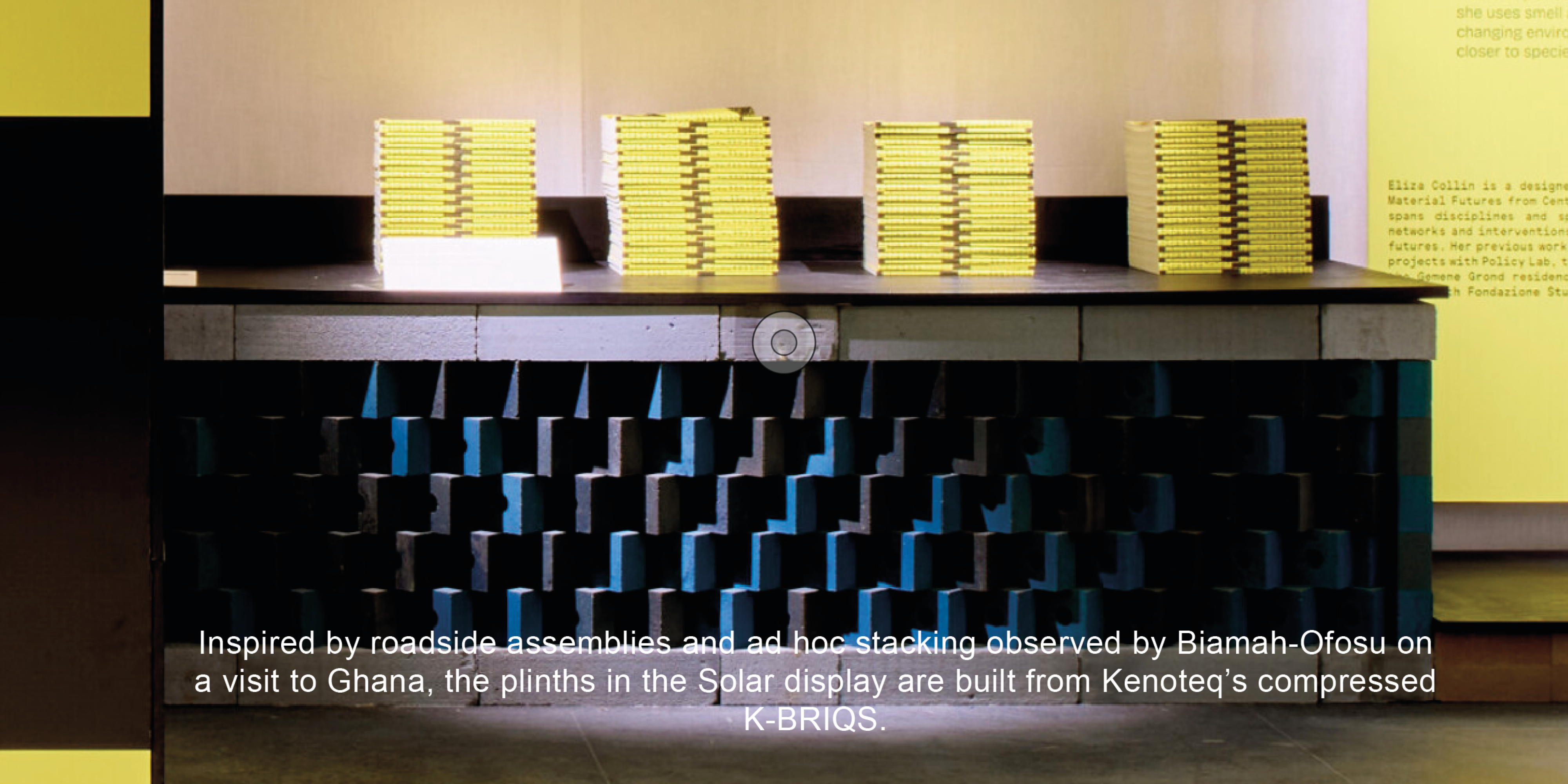 The resulting report (below) and film (forthcoming) explore the material and immaterial decisions that enable the re-use of building and constructions materials. The project opens and closes with the borrowed and stacked K-BRIQ – a low carbon brick made from waste construction aggregates – selected by YAA Projects for use in Solar, this year's Design Researchers in Residence display.