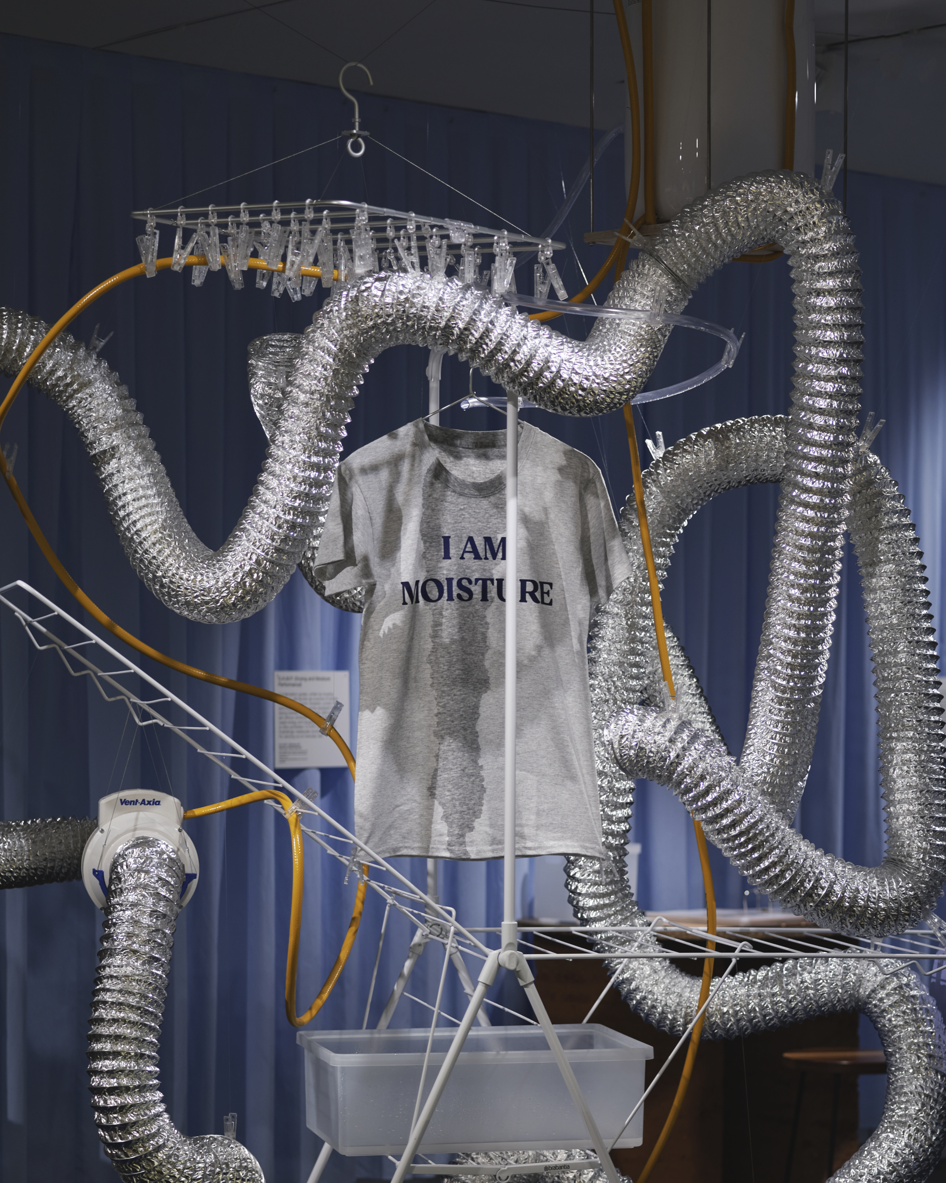Marianna’s research aims to understand how methods and places for cleaning our clothes have changed over time: from communal facilities to islands of domesticity. In this display, Marianna presents artefacts from London’s lesser-known laundry histories and a crowd-sourced survey of domestic habits, to argue against private solutions to public problems. The assemblage at the centre of her section depicts an impossible tangle of mechanical, carbon-intensive ‘solutions’ to drying laundry, prompting us to ask what communal resources might be needed for healthier, fairer futures.