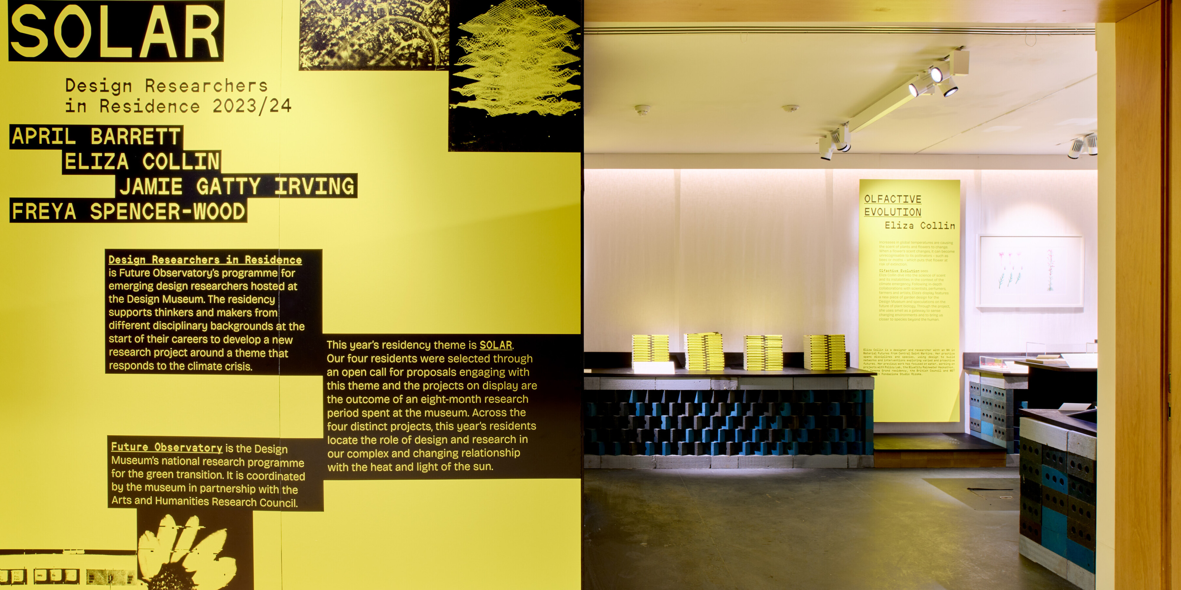 Solar brings together the work of the four 2023/24 Design Researchers in Residence. The projects featured in the display explore our changing relationships with the heat and light of the sun through multidisciplinary and collaborative work.