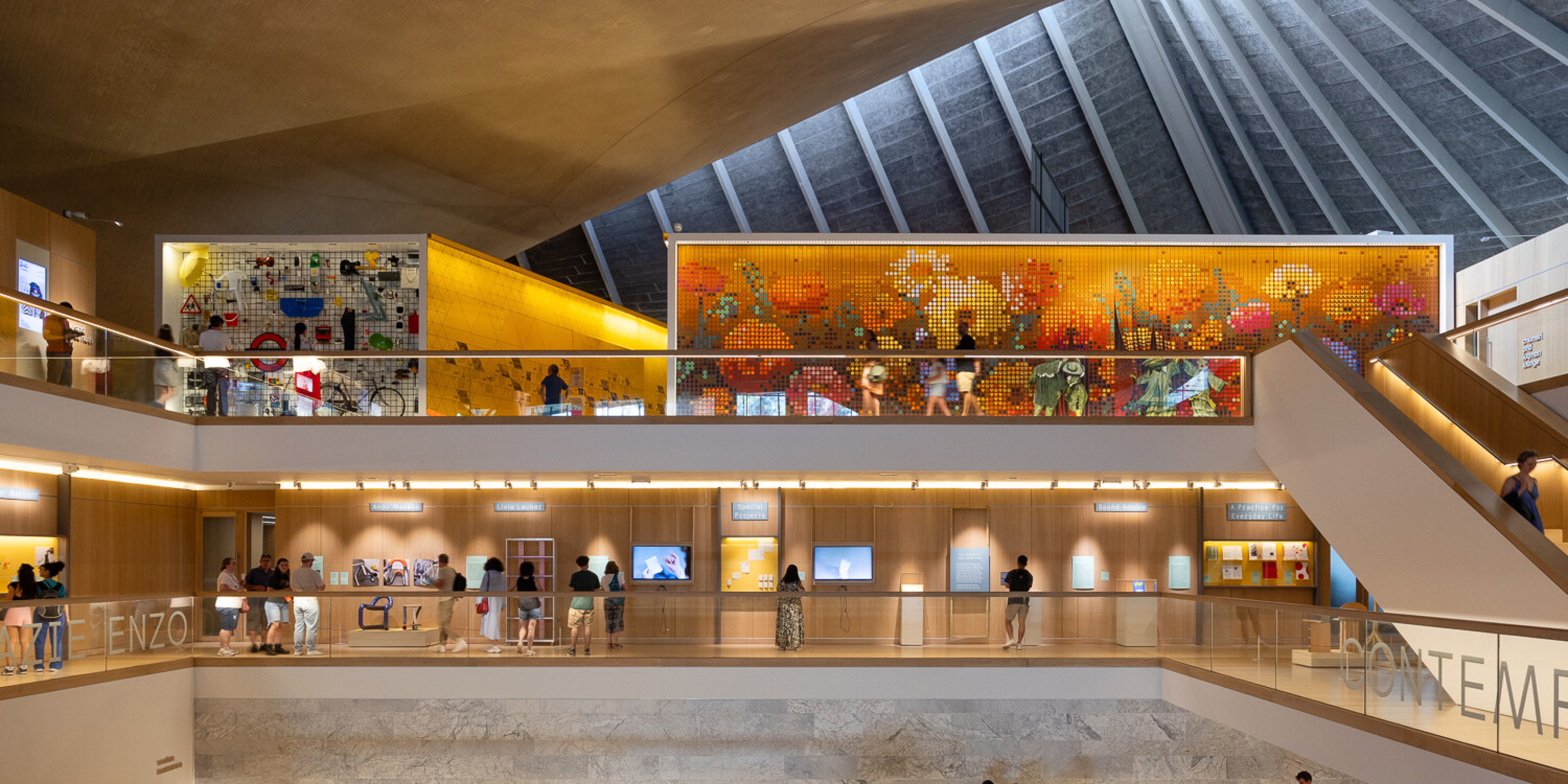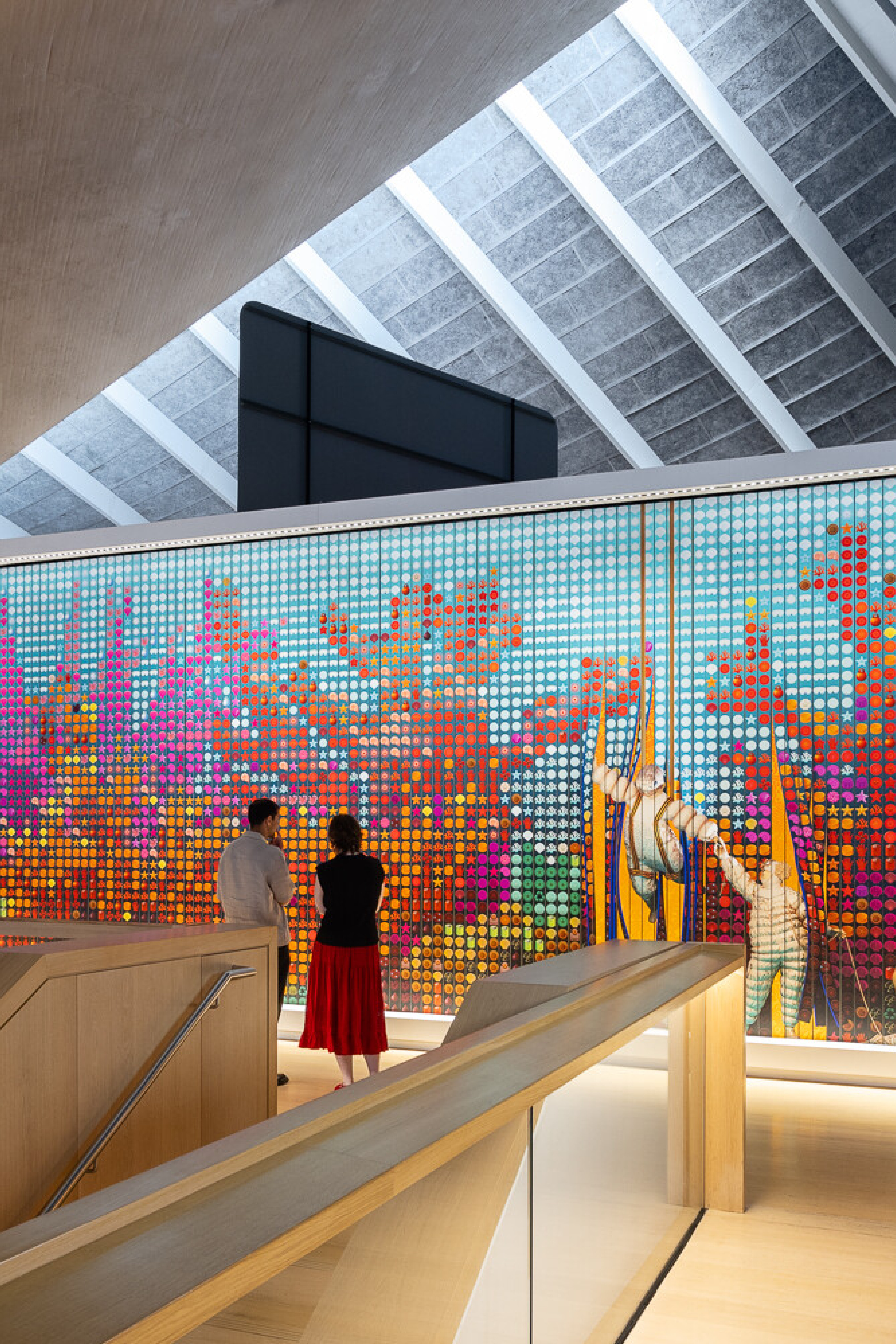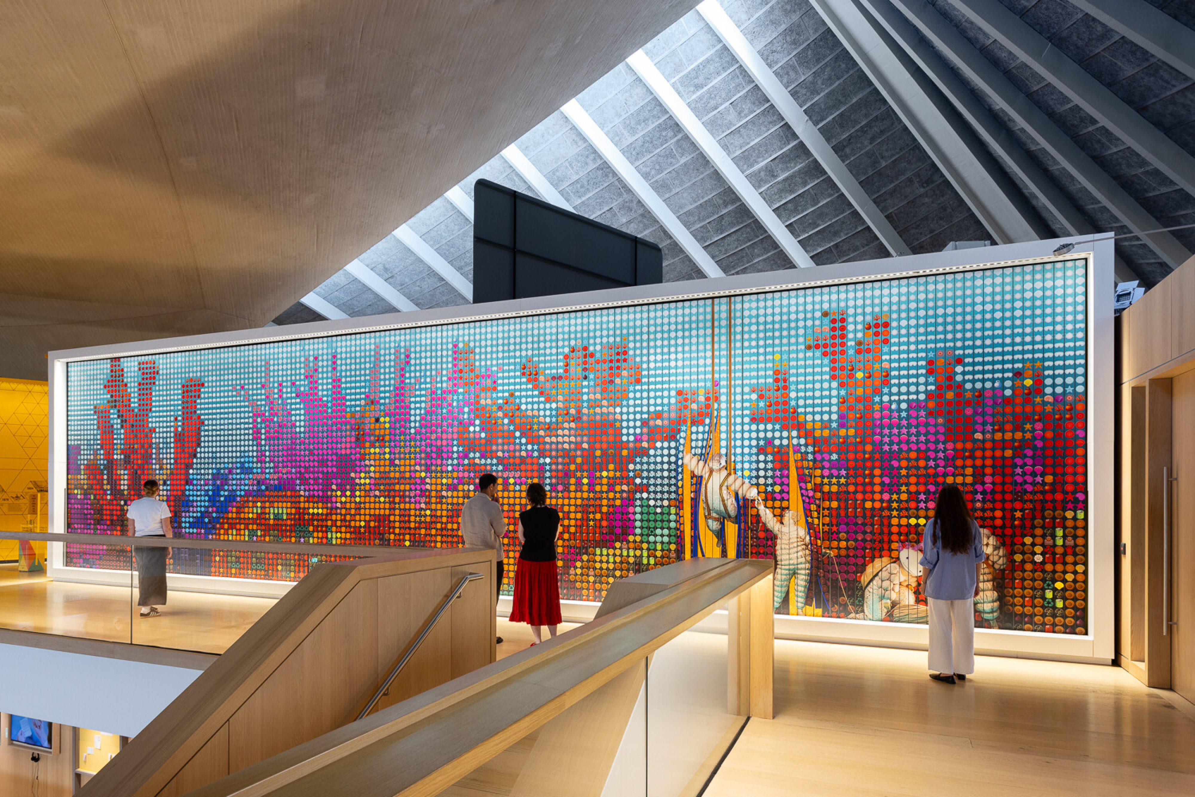 On view from July 2024 and free to experience, the panels consist of 176 constantly rotating prisms. They have been created by architecture and design studio Space Popular (directed by architects Lara Lesmes and Fredrik Hellbergin) in collaboration with architectural historian Shumi Bose. Space Popular is an art, design and architecture studio that explores the future of spatial experience through research, design, and artworks.