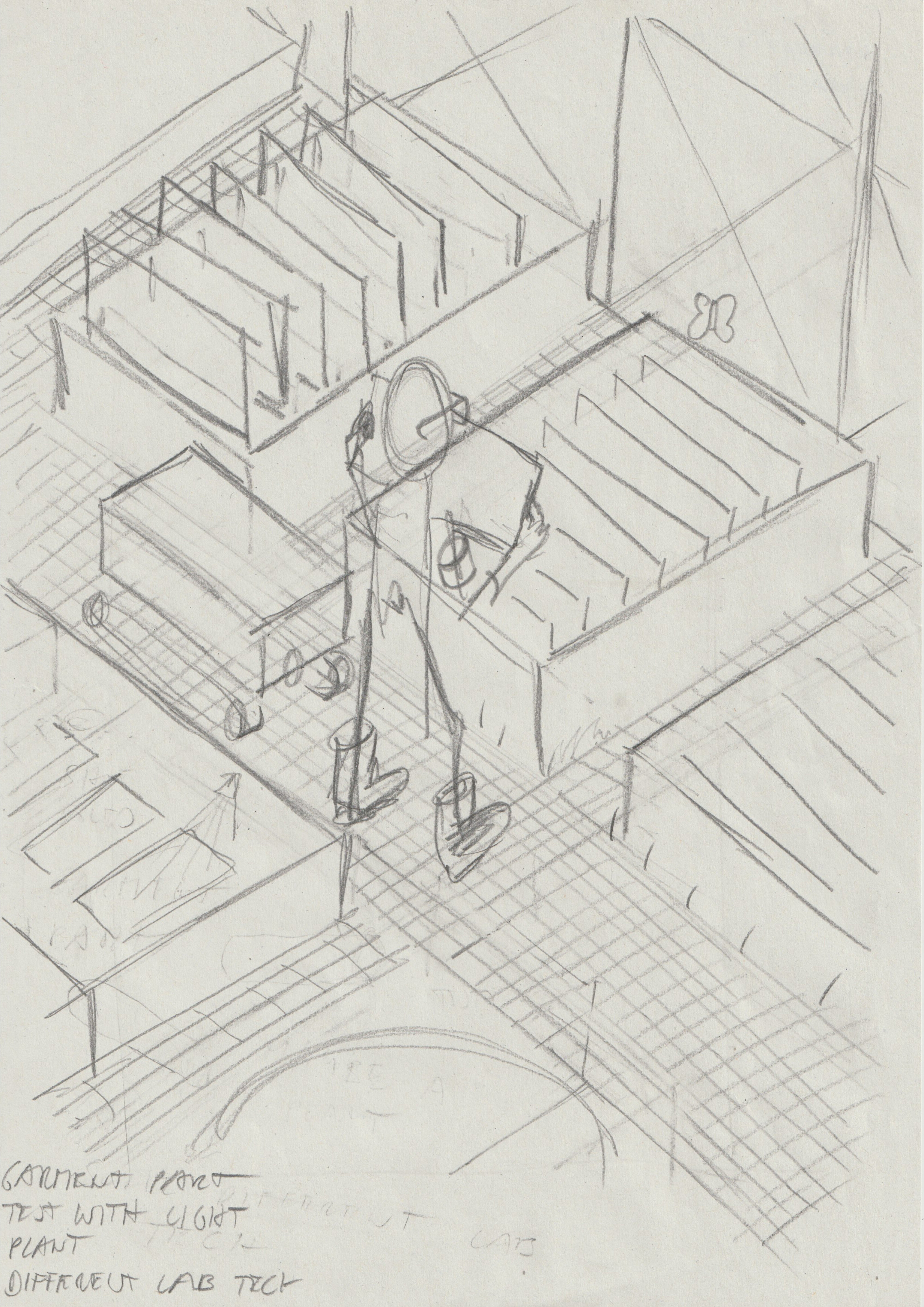 During the workshops sessions, Max Guther begun sketching initial directions for the scenes to be depicted, before going away and producing early sketches. The researchers gave feedback on the scenes, refining details, removing and adding elements, before the final drawings were signed off and sent to print. Throughout the process, the whole team were intent on presenting images that felt realistic yet optimistic, rigorously researched but imaginative and sustainable but not naive.